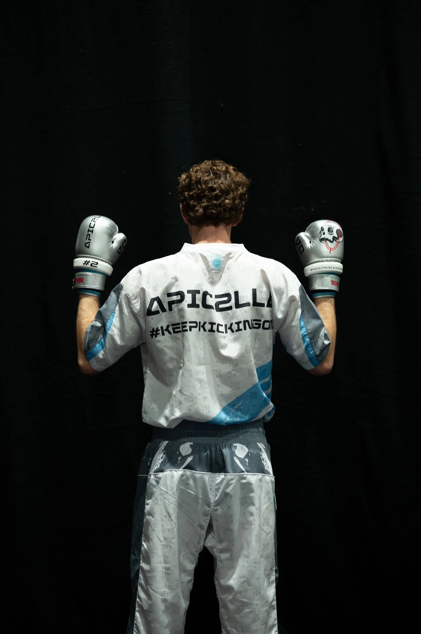 🥊 Pictured here you can see the Chrome Silver “DA” gloves and “#KeepKickingOn” uniform 🥋